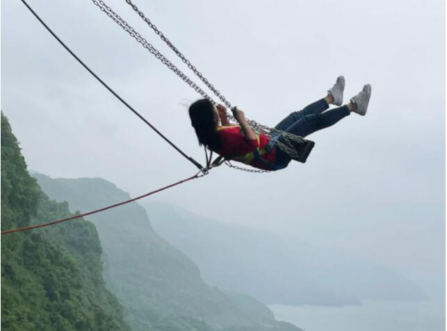 有的體驗(yàn)了懸崖秋千的極限刺激...