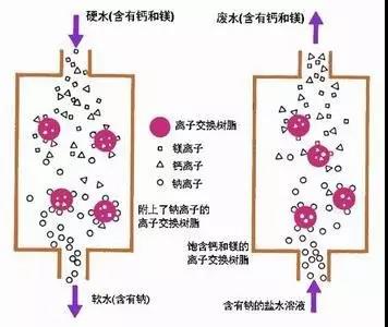 軟水機原理:陽離子樹脂交換。軟水機中用樹脂中吸附的鈉離子置換出水中的該鎂離子,含鈉離子的水流出變成“軟水”,直至所有的樹脂表面均被鈣鎂離子占據(jù),不能進行離子交換位置。