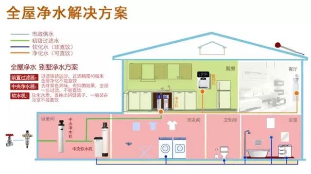 家庭水設(shè)備就是根據(jù)家居水質(zhì)的情況,在用水管路的適當位置設(shè)計、配置相關(guān)的水處理設(shè)備:前置過濾器、凈水機、軟水機、純水機、末端直飲機等等,以提高居家生活飲水和生活用水的質(zhì)量,達到家庭用水的四個現(xiàn)代化:“健康化、方便化、自動化、時尚化。”