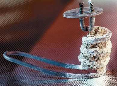 現(xiàn)象三:洗澡的花灑水流越來越小,打開一看,除了銹跡斑斑更多的是乳黃色粉末沉淀。